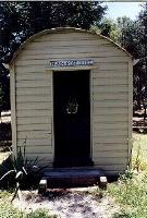 Above is the appealing little weatherboard building being the original Post Office for the area known as Huon, which was between Jindera and Burrumbuttock. Two of the original furnishings of the Post Office are the cane letter basket, shown above middle below a hole in the wall to push the letters through, which would then fall into the basket. In the top left hand corner of the middle photo you can see some of the stamps issued at the time. On the right is the original primitive wooden cupboard. Inside the Post Office is the day book and various postal implements.
