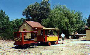 The Stringybark Express - Lil Red Postal Motor operates on the old broad gauge railway line from Wahgunyah, (on the Victorian side of the Murray River, opposite Corowa ), along the flat open Carlyle plains, through the remnant woodlands, then past vineyards and orchards, under the historic High Street Bridge and into the Rutherglen Station.