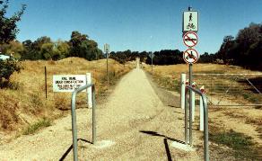 THE OLD RAILWAY LINE FROM WANGARATTA TO BRIGHT AND BEECHWORTH HAS BEEN TRANSFORMED INTO A FULLY BITUMINISED BICYCLE TRAIL. The trail from Beechworth to Everton Station is approximately 16 kilometres. To follow the trail by car you will need to drive along Diffey Road, which commences near Pennyweight Winery or the Beechworth Stagecoach Home Base, and turns into an unsealed road about 4 kilometres towards Everton. Diffey Road finishes at the Everton Township itself, whereas the Rail Trail goes to Everton Station, about 3 Kilometres northwards past Everton. Years ago the trains from Melbourne and Wangaratta followed one line through Bowser, Londrigan Station, Tarrawingee Station, to Everton Station, where the train could then either go straight ahead to Bright or turn left and head to Beechworth. Please note that both Everton Station and Tarrawingee Station are at least 3 kilometres from the Townships. Also note that in 1901 two famous Federation Trees were planted at each of these stations. They are both obviously 100 years old in 2001, and are both beautiful ghost gums, with lemon scented leaves. Currently the trail commences at the Beechworth Croquet Club on Camp Street, opposite the Chinese Gardens. Soon the trail will commence at Lake Sambel and run through the Chinese Gardens to the Croquet Club. Pictured above is the Rail Trail passing the Croquet Club, and running through the Old Beechworth Railway Station, and off through to Mellish Street. Pictured above is the Rail Trail at Mellish Street running straight into the distant hills towards the bridges at Fighting Gully Road. Above right is one of the Bridges just over Fighting Gully Road, crossing a small stream. Around this area the trees abound with many varieties of bird life.