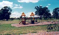Emerging from the little valley you will come out on Heathwood Park, photo above left, and you peddle through the park until you come to Oliver Street. You must cross Oliver Street, and turning left over the creek, the bike path is on your right. Proceed down the bike path. The Creek is now on your righthand side, and it has changed from a pretty country creek to a huge concrete drain. This is part of the flood prevention policy of the council. As you ride on a further few hundred metres, and the creek veers to your right, if you look closely at the "paddock" you are in, you will notice that there is a grassy levee bank all around you. You are now actually in a water reservoir, or a water holding area, as when there is a huge downpour, the only way for the water to get out is through the four pipes which block the drain or creek at the southern end of this park, photo above centre. If there is more water coming down the creek than can get through the four pipes, the water will backfill this whole park from Union Road to Oliver Street. This is known as the Lavington Storm Water Retarding Basin. Near Union Road you must pedal faster to ride up the Dam Wall, or Retarding Basin Wall, where you ride over the creek again above the retarding pipes, and then down the wall to cross over Union Road. The photo above right shows the Union Road crossing with the creek now on your left. Union Road to North Street 2.0 Km Crossing Union Road you peddle towards the North Albury Bowling Club, and then veer right into Frederick Park, photo above left, and head towards Logan Road. Above centre is a photo looking back into Frederick Park, looking towards the North Albury Football Ground. Unfortunately at Logan Road there are no signs to tell you where to go, but cross Logan Road and continue south down Fairview Drive. Right at the end of the street you will pick up the bike path again, but only for a few hundred mertres. The path stops at Ryan Road. Ahead of you you can see the Golf Course, and the creek is to your left. Turn left and proceed down Ryan Road, veering right at the Cemetery, into St James Cresent, and keep going straight. At the end of St James Cresent you again pick up the bike path as it heads towards the Netball Courts at North St. Above right is a photo of the path at the end of St James Cresent. North Street to Dean Street 1.8 Km