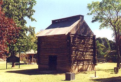 This log kiln was built by the Pizzini Brothers of Eurobin in 1957 and was typical of the kilns built during the 1930's to early 1960's. Tobacco leaves are tied onto a stick using string and approximately 500 of these sticks are hung on the racks in the kiln. The kiln is heated by wood burnt in one or two furnaces located outside the rear of the kiln. The heat from the furnace is piped by flue pipes into the kiln. The temperature starts at 30 degrees centigrade, and finishes at 74 degrees. Humidity is manually controlled by the size of the fire, and the opening of exhaust vents in the roof, and fresh air vents at floor level.