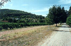 The Official Start/ Finish to the Rail Trail/ bike path from Bright to Porepunkah, or from Myrtleford to Porepunkah is just below the main street and the shopping centre, in the beautiful Porepunkah Picnic Reserve on the banks of the Ovens River, pictured above. Upon leaving the Porepunkah Reserve, the bike path /trail goes underneath the main Ovens Highway, pictured above left, and then runs along the left hand side or the western side of the highway for a few kilometres, before crossing the highway. The photo above right shows the bike path at the Porepunkah signpost, looking towards Porepunkah, with the bike path on the eastern side of the road. The Porepunkah Rail Trail passes this explanatory sign which informs persons that the Rail Trail stage one is 94 Kilometres long from Bright to Wangaratta and cost $1,700,000. Not far from here the trail passes Boyntons Winery, photo above right.