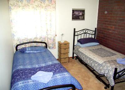 Above are the two units looking east over parklands. The comfortable lounge area. Looking into the modern fully equipped kitchen. The main bedroom has a queen sized bed. The second bedroom has two single beds.
